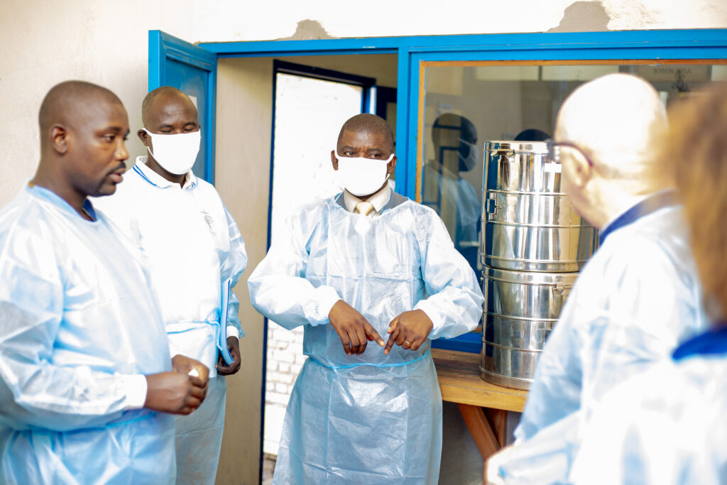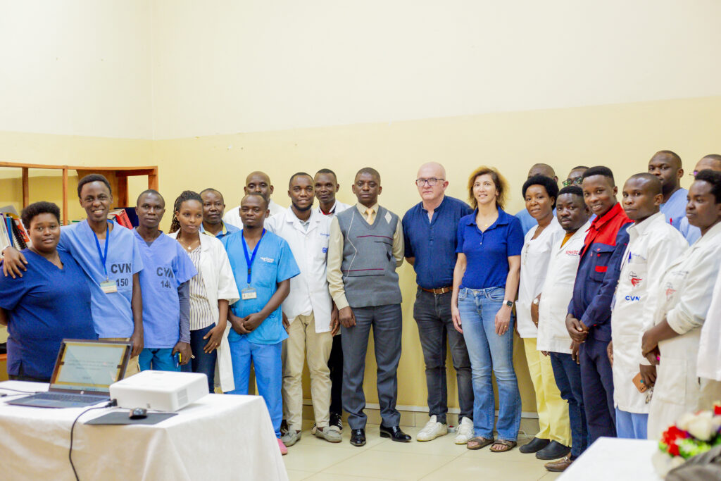 Le Médecin Directeur, le Rév. Dr YAMUREMYE Fulgence, assisté du Chef de Service de Chirurgie, le Dr NTAHOMPAGAZE Théophile, a guidé les visiteurs à travers les différents services et présenté la vision de la clinique : offrir des soins de qualité, tout en développant des techniques chirurgicales avancées comme la laparoscopie.